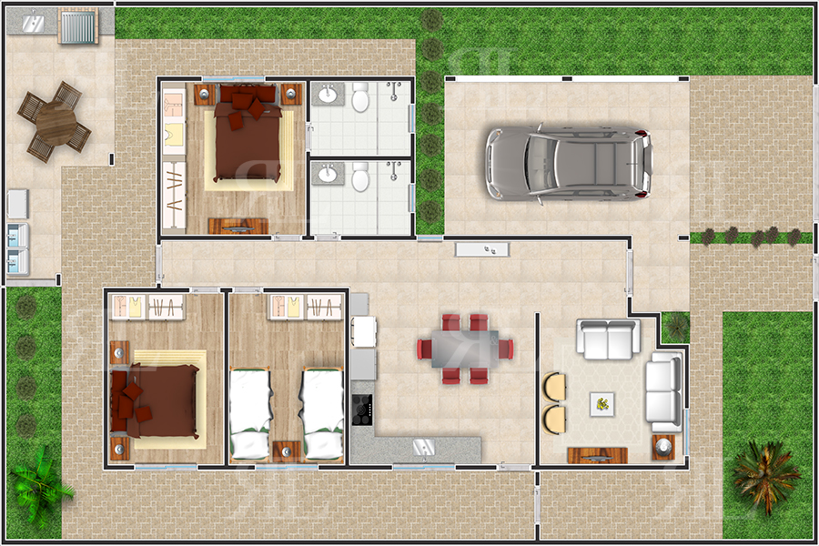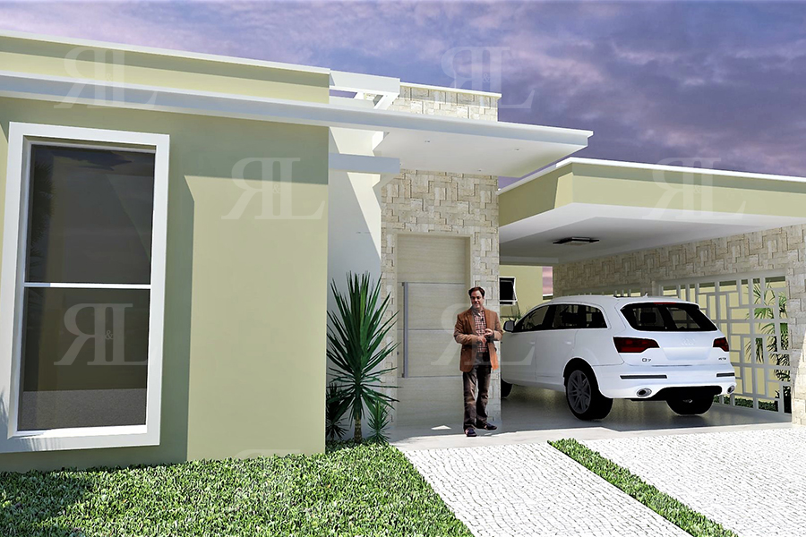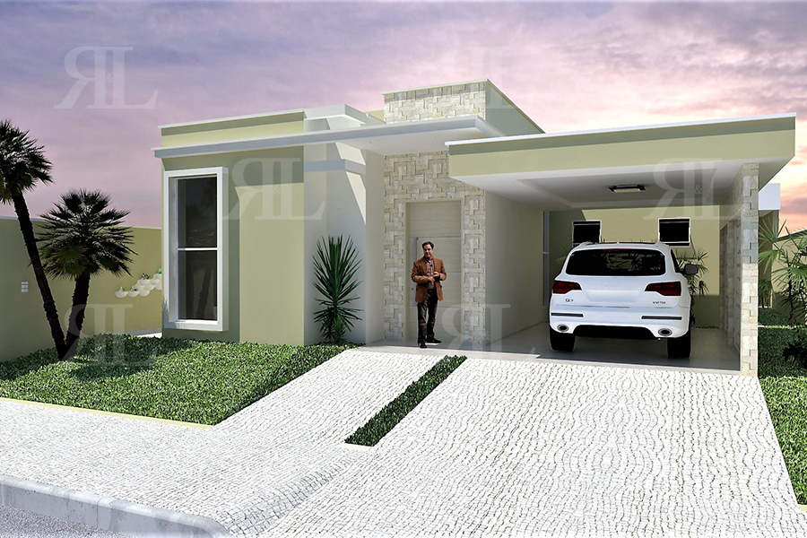 O terreno tem por base as medidas de 12 m de frente por 20 m de fundo, e pode ser adaptado ao seu terreno.